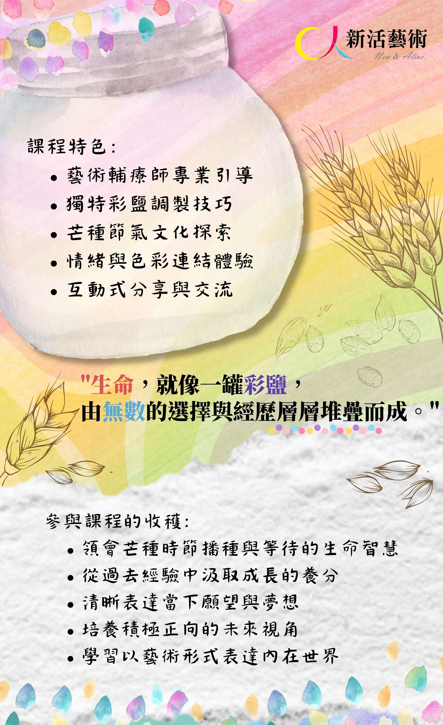 【雲端繪沙龍】封存記憶彩鹽瓶—藝術輔療單次性團體課