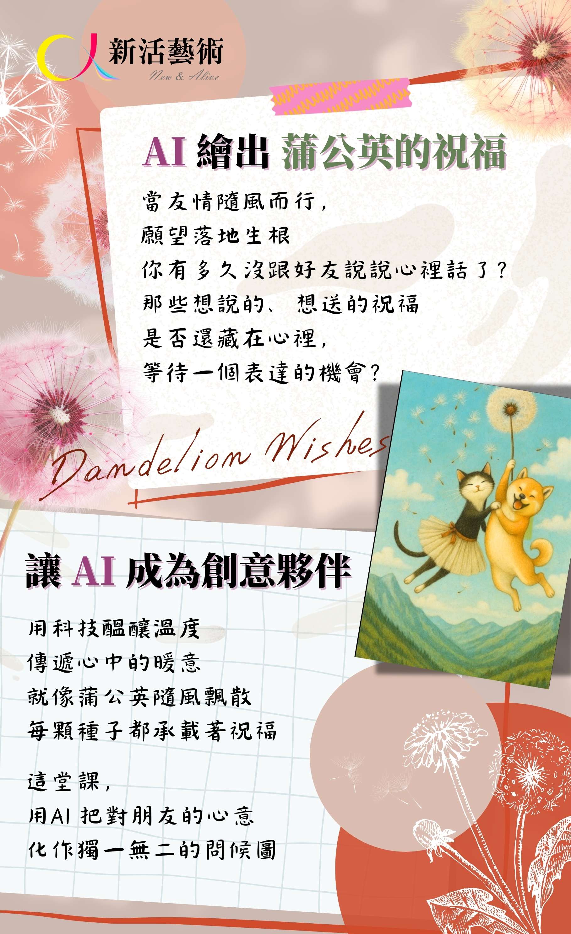 【雲端繪沙龍】AI畫出蒲公英的祝福—藝術輔療單次性團體課